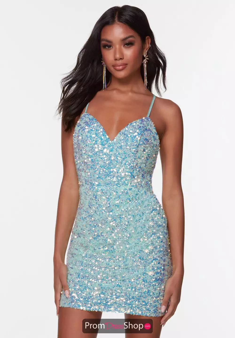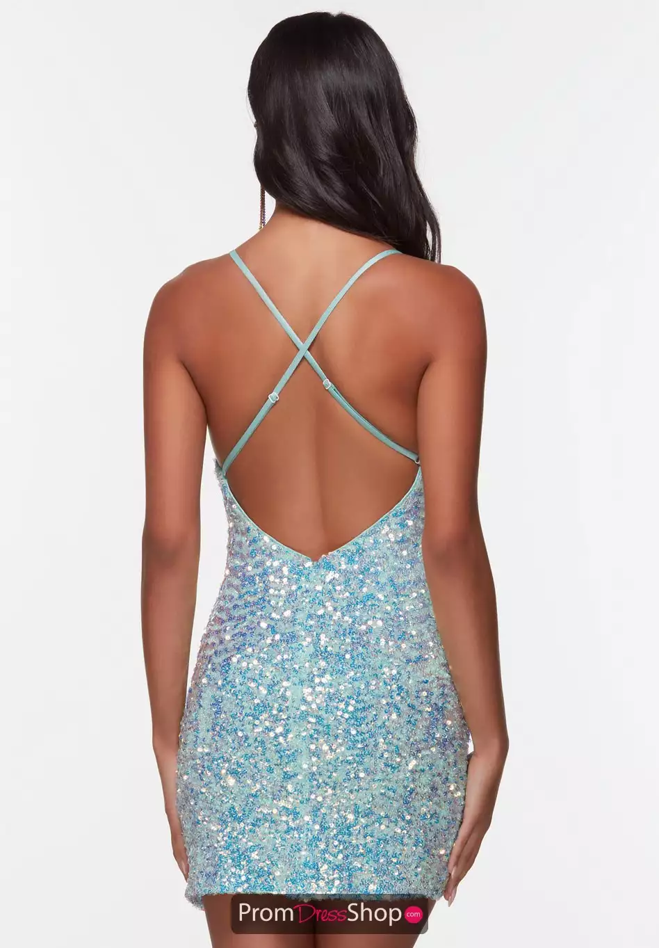 Be on trend at your next special occasion with this eye catching Alyce Paris short dress 4543. Fitted short dress displays a modest v neckline with thin, adjustable straps along the open back. Fully made out of glistening sequins, this stunning dress will be seen from miles away.