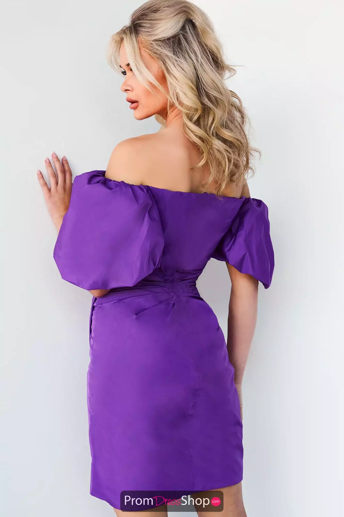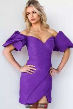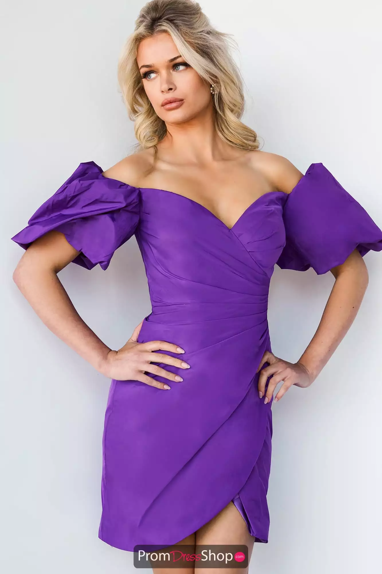 Your entrance will be noticed as you step on the scene wearing this stunning taffeta short dress by Jovani 12809476. Classically styled with an off the shoulder neckline, this little number cinches the waistline perfectly. Ruched detailing adds a unique touch to the solid colored silhouette that is pulled together with a zipper closure discretely placed on the back of this dress.