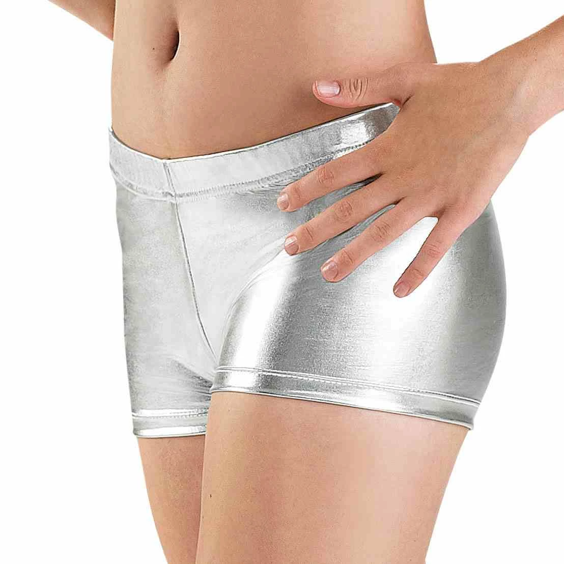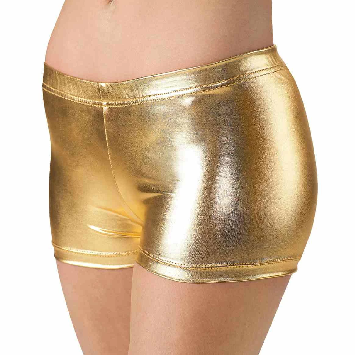 Metallic shorts are perfect for extra coverage while wearing short dresses. The extra large size features a 2 1/2 inch inseam. Medium is 26 inches. All are metallic colors. Large is 28 inches and Extra Large is 29 inches. The Small has a 24 inch waist. The inseam is 2 inches on the small, medium and large sizes.
